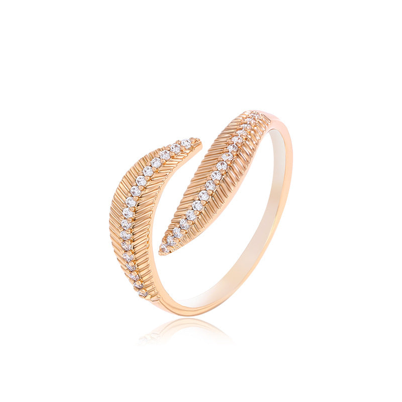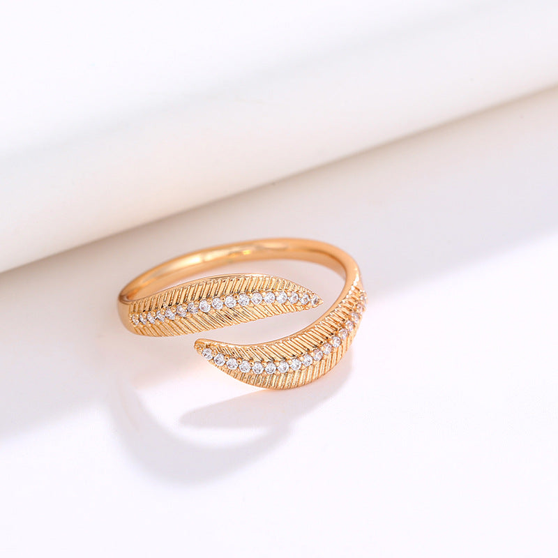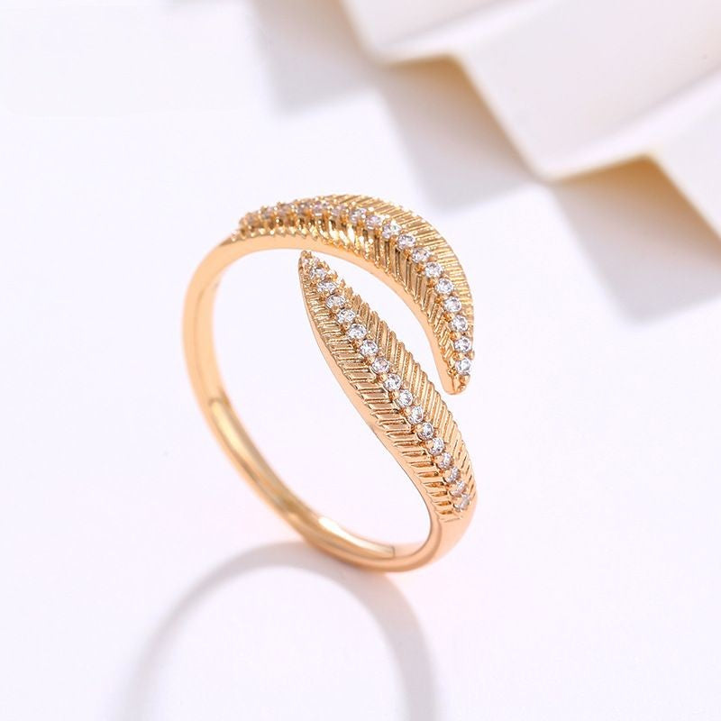 Introducing our stunning 18K Leave Ring, a true testament to the beauty of nature. Featuring an intricate leaf design that sparkles with zircon, this ring is crafted from high-quality stainless steel with a luxurious 18k gold plating that ensures both durability and shine.