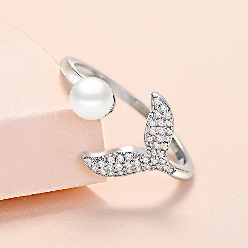 Introducing our enchanting Mermaid Tail Pearl Ring! Made from high-quality brass and plated with either shimmering gold or silver, this adjustable open design ring is both elegant and versatile. One end of the ring features a delicate freshwater pearl, while the other boasts an intricate mermaid tail design that is sure to turn heads. The adjustable design means that it can be easily worn on any finger and makes for the perfect addition to your everyday jewelry collection or as an eye-catching accessory for special occasions. Choose from our two stunning color options to match your personal style. Whether worn alone or stacked with other rings, this Mermaid Tail Pearl Ring is a must-have for any fashion-forward jewelry lover.