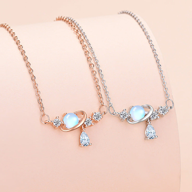 Don't settle for ordinary jewelry when you can have something as unique and special as our Moonstone Planet with Meteor Necklace. Order yours today and take your style to the next level!