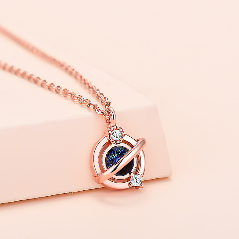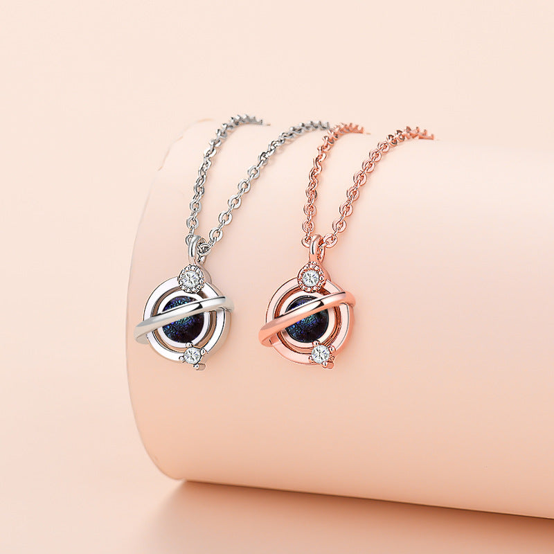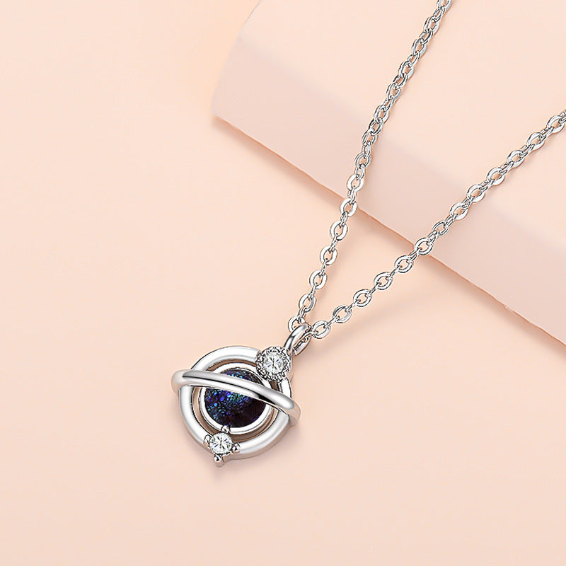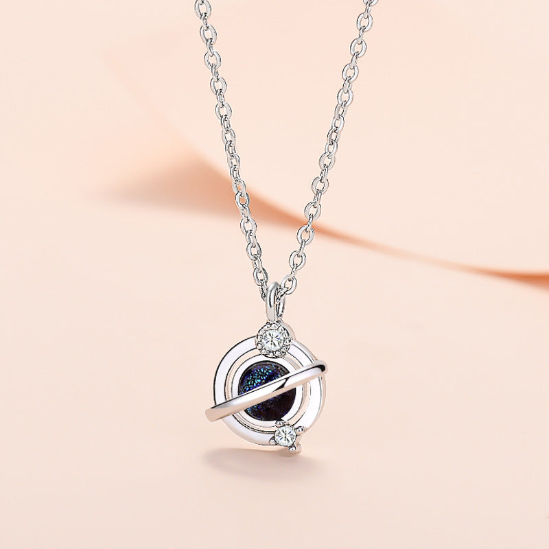 The intricate details of the planet design make this necklace a true standout piece that can be worn for any occasion, whether it's for everyday wear or to add some extra shine to your party or wedding attire. Its simple yet unique style will easily complement any outfit, making it a versatile addition to your jewelry collection.