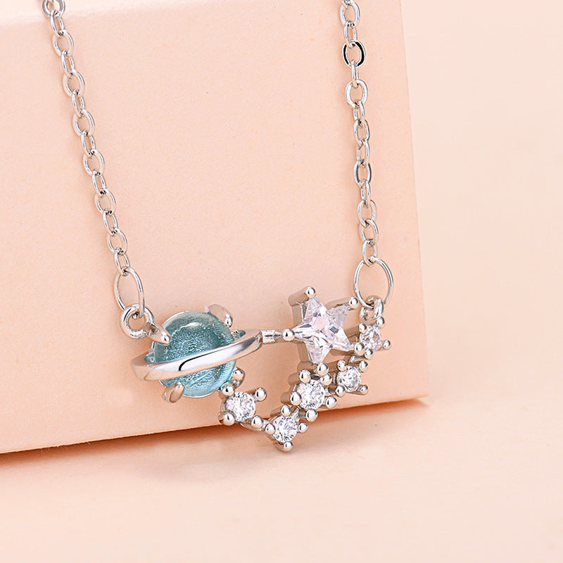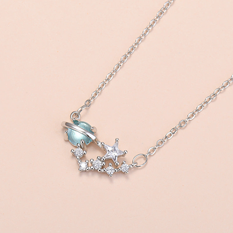 The focal point of the necklace is the stunning planet pendant that showcases intricate details and a captivating design that is sure to turn heads. The pendant is complemented by the big dipper design, adding a celestial touch to the piece.